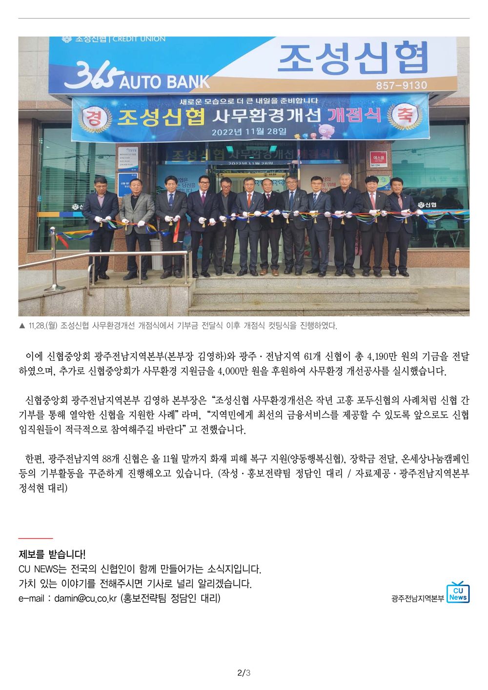 광주전남 61개 조합, 조성신협에 기부금 쾌척